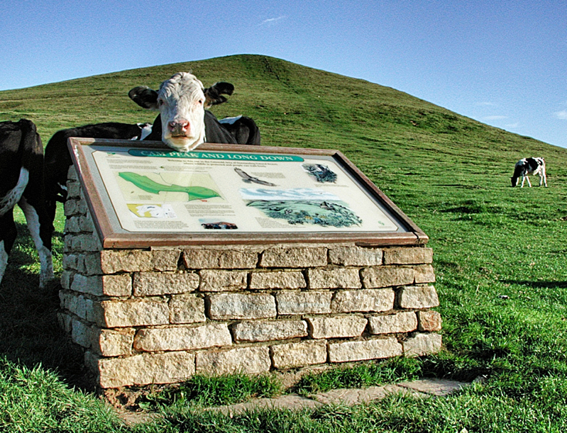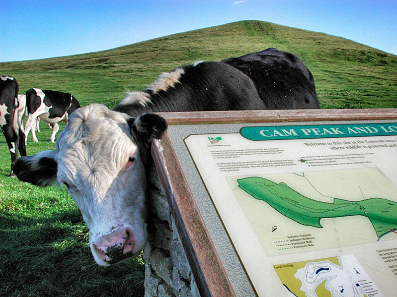 The cows at Cam Peak were at their curious best, the place itself a gorgeous hilly spot near Cam, a fair size village nearby. For walkers, it’s a good spot too, for the Cotswold Way follows the line of the escarpment and gives stunning westerly views for mile after mile.