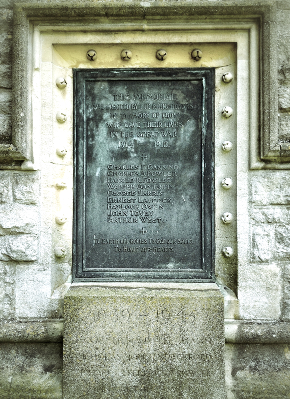 Heythrop village itself is little more than a hamlet, 2-3 miles from Chippy. It consists of a handsome church (above) and various houses, though one particular line of these is interesting, as they were built in the 1870s and 1880s as a ‘model’ village by local politician Albert Brassey, who lived in the classically-styled Heythrop Hall country house. At the steeple’s base are a plaque and stonework commemorating local men who died in the two World Wars (below).