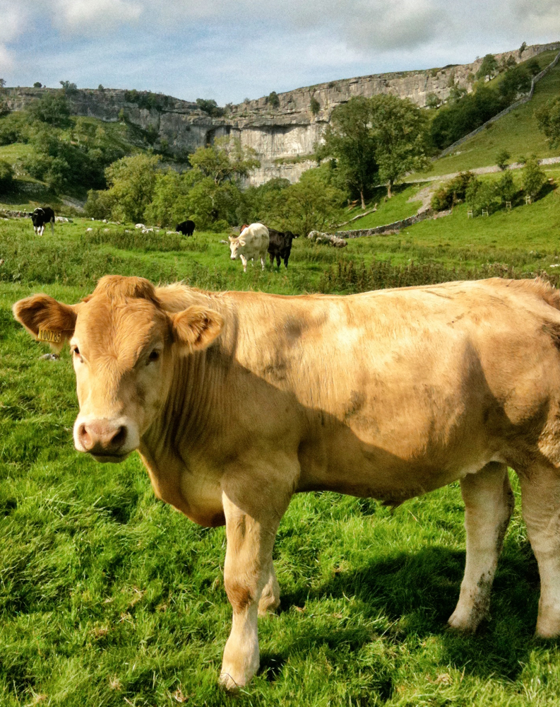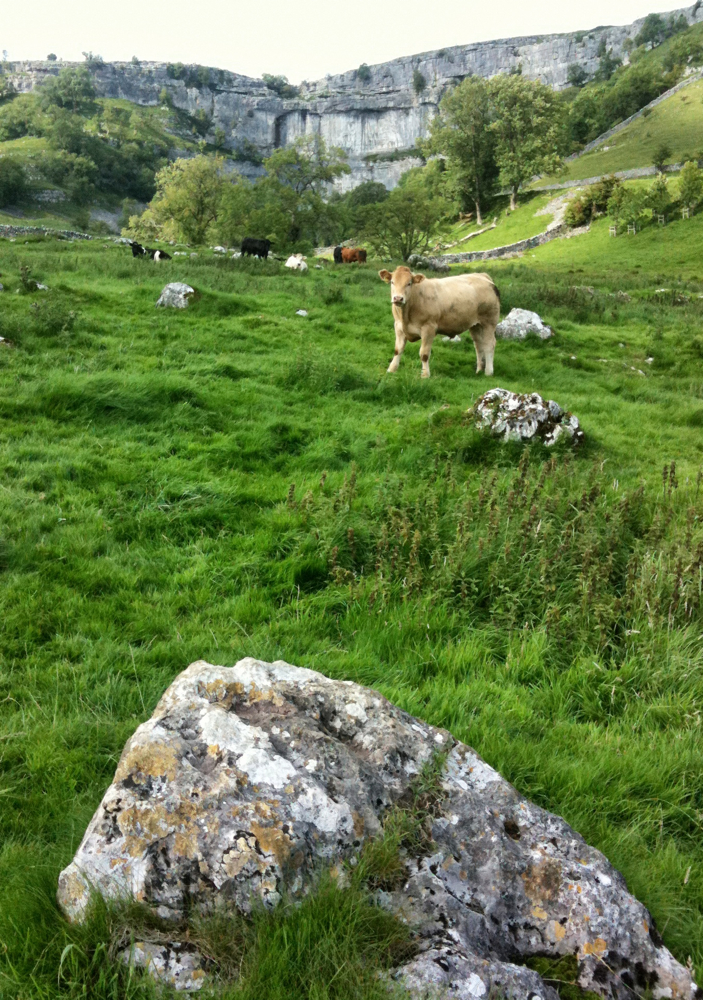 On the day I went, these cows were grazing on the rich grass, and a curious bunch they turned out to be, wondering over to say hello, while staying out of stroking distance. Leaving the cows behind, and walking nearer the Cove, its sheer size becomes apparent, an impressive hunk of landscape, with a rock face some 80 m (260 ft) high. The walk from Malham follows what is technically a ‘dry‘ valley, but the beck bubbles cheerfully through, and an ancient flat-stone bridge links the banks at one point.