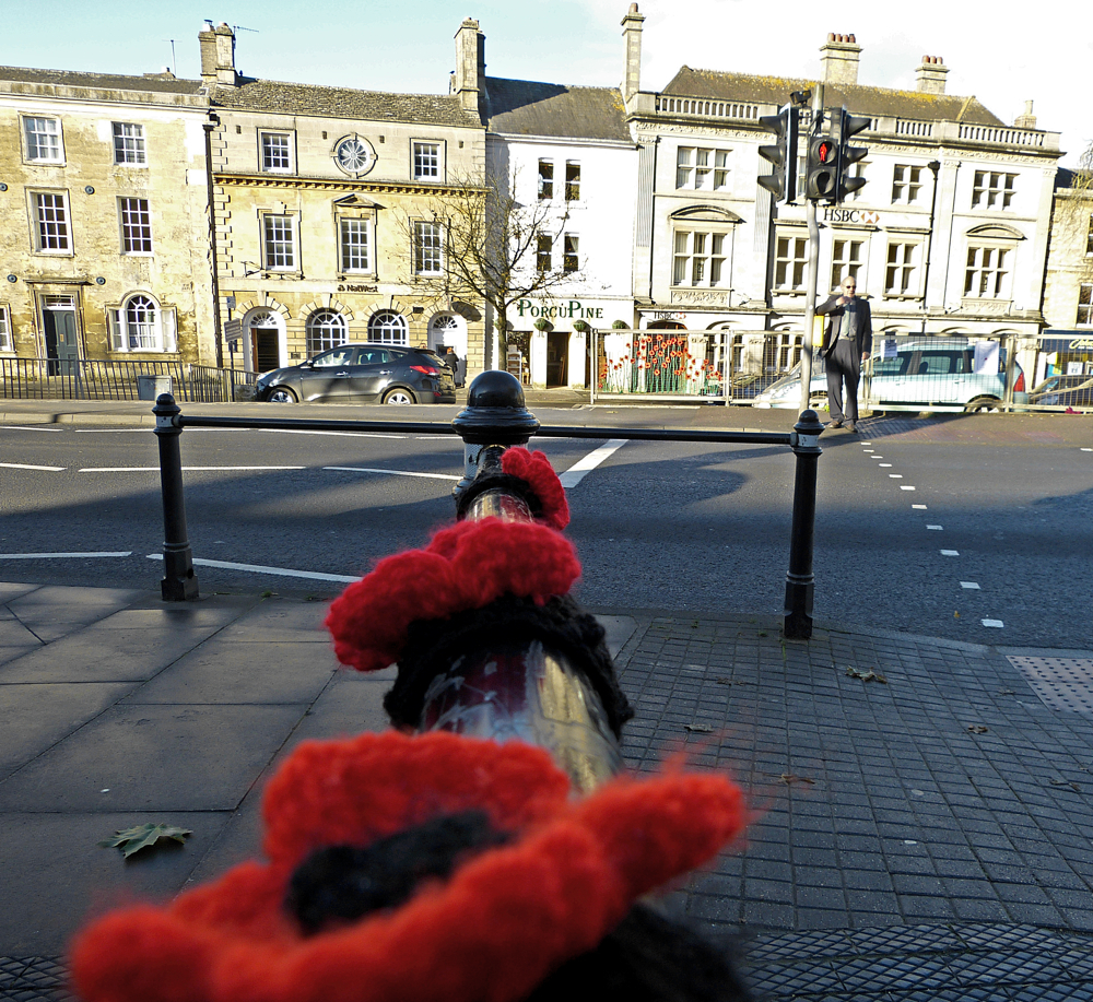 In Chipping Norton, the town centre has become a field of knitted poppies, a touching and highly visible Remembrance Day memorial by a mystery knitter – well done and thank you.